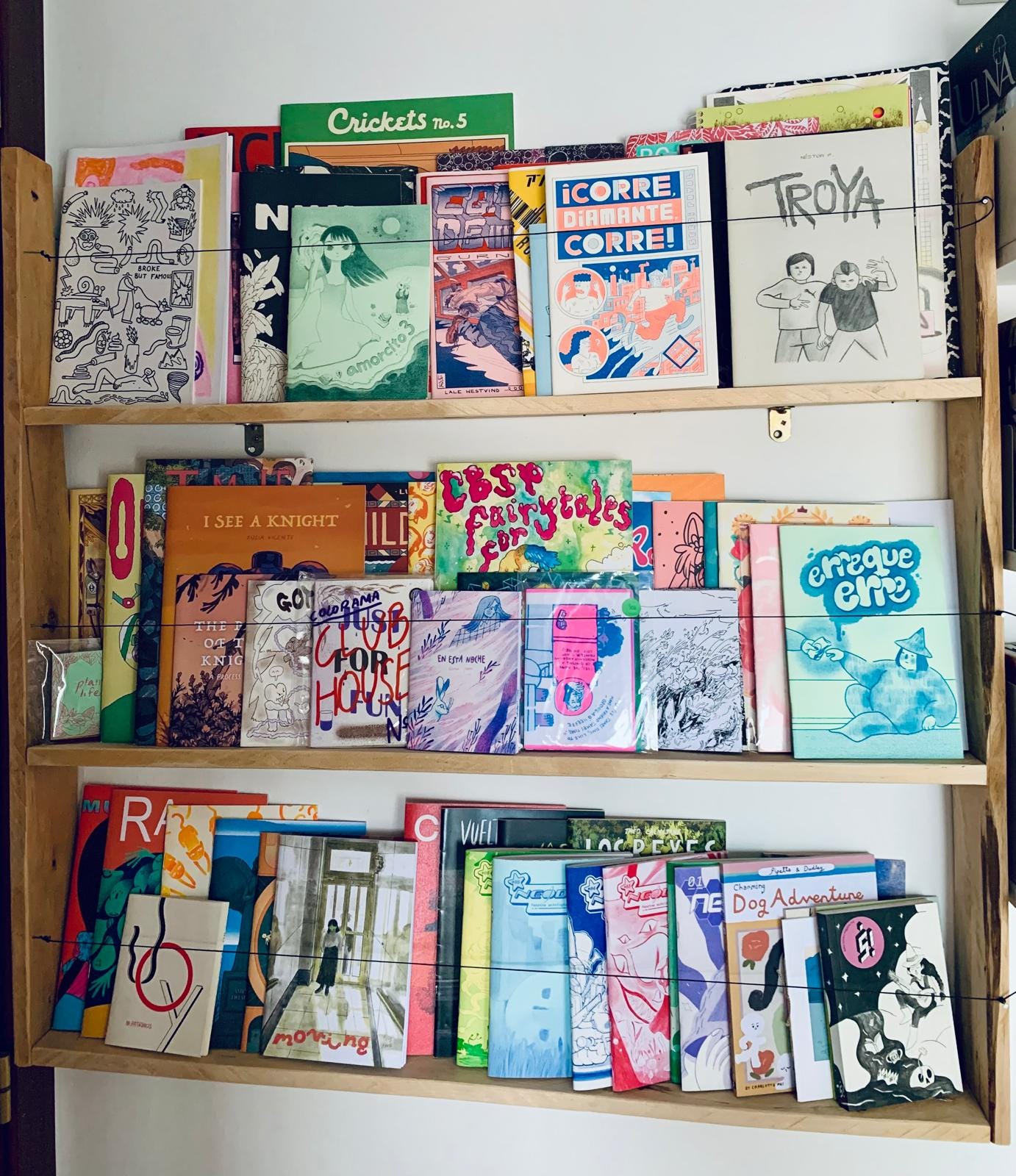Me hice una fanzinoteca con un palet. No me caben todos los zines que tengo, pero quedan bonicos así puestos. Tendré que hacer otra.