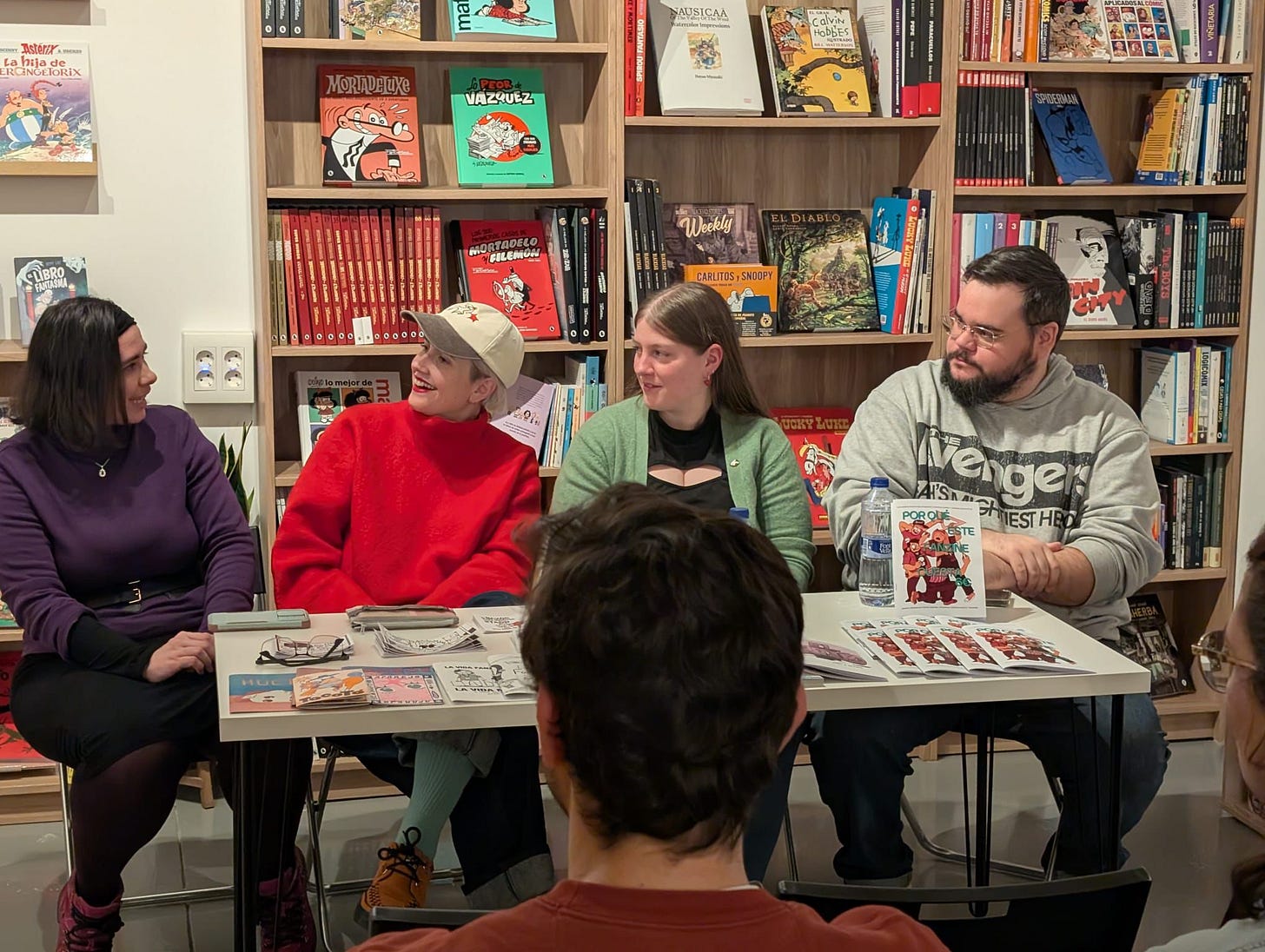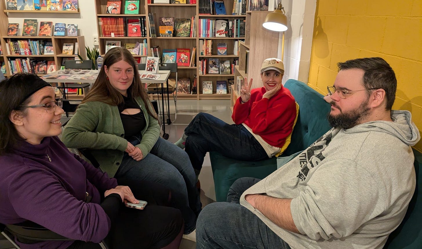Hicimos un zine a cuatro manos entre Chris G. Represa, Efra Pérez y Nerea (RedStrawberry) y yo en 3 semanas para el MangaBCN 2025: ¿Por qué este fanzine cuesta 6€? Lo agotamos. Lo reimprimimos y el pasado viernes 23 de enero lo presentamos en Nausicaä Cómics Nos lo pasamos muy bien pegando una chapa eterna sobre autoedición y nuestras experiencias fanzineras que, ojo a la pandilla valiente que aguantó el chaparrón mamarracho. Gracias por hacernos compañía y preguntitas <3