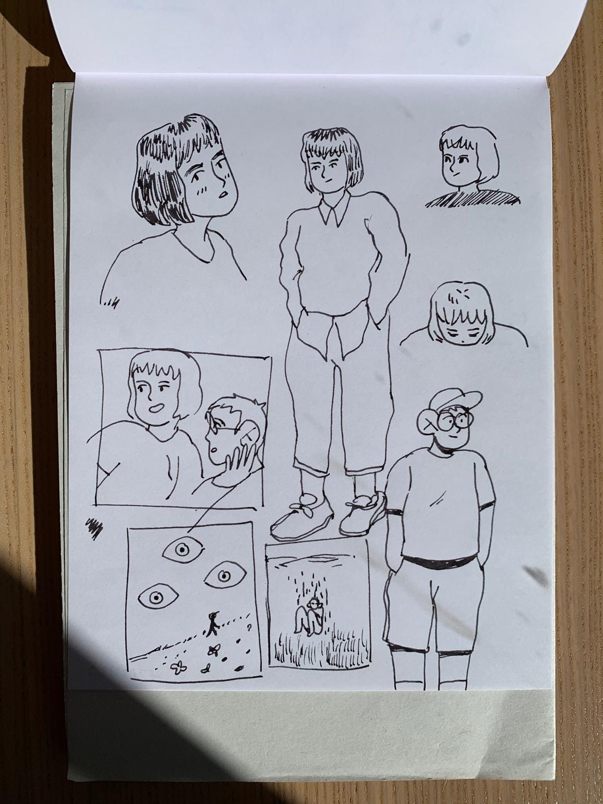 AURORA es Twin Peaks meets Ghost World meets Gilmore Girls. La que espero sea mi primera novela gráfica. Después del beteo me puse a corregir y luego a dividir por páginas y me salen como 140 páginas de cómics. Esta vez he dibujado rectangulitos pequeños en una de mis libretas para usarla de guía de lo que ya está dibujado y lo que me queda: